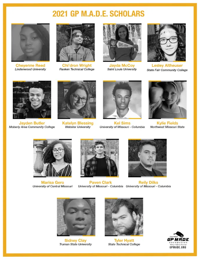 Congratulations to each of GP M.A.D.E. Scholarship recipients! Each student is from Missouri and attending a college, university, or trade school in the state of Missouri.